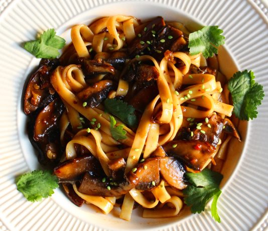 Deze mooie Italiaanse pasta met champignons in een pittige paprikasaus is een heerlijke vegetarische pasta.