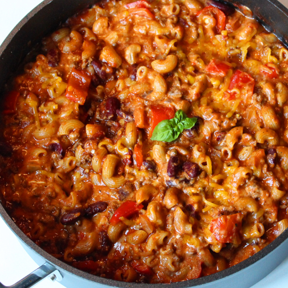 Deze hartverwarmende chili Mac & Cheese is een heerlijk eenpansgerecht en een combinatie van chili con carne en Mac & Cheese.