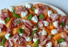 Vouw het filodeeg naar binnen zodat er een mooie korst ontstaat. Bak de filotaart 25 minuten in de oven totdat deze gaar is en goudbruin. Haal de koekenpan uit de oven en verdeel er de mozzarella en resterende prosciutto over.