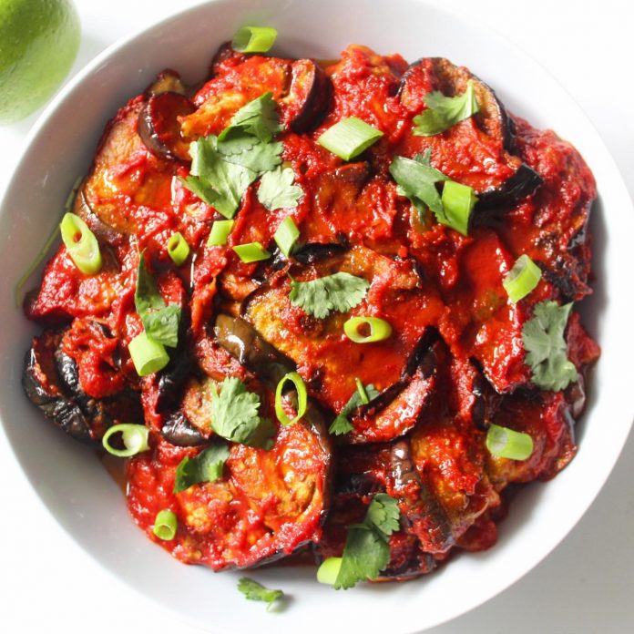 Deze smaakvolle Indiase auberginecurry is ook nog eens supergezond en bevat veel kruiden.