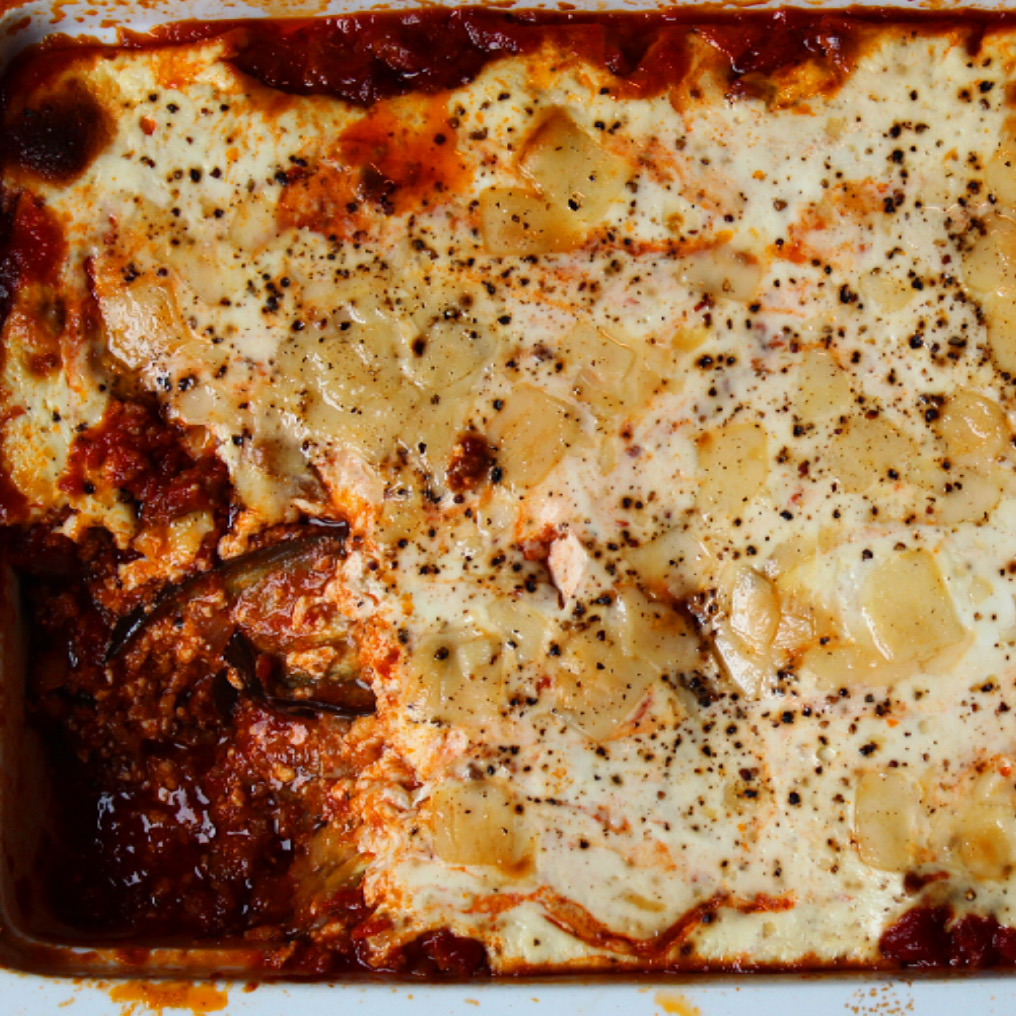 Deze fantastische moussaka met een topping van Griekse yoghurt heeft heel veel smaak en is helemaal top als je een wat grotere groep gasten ontvangt voor het diner.