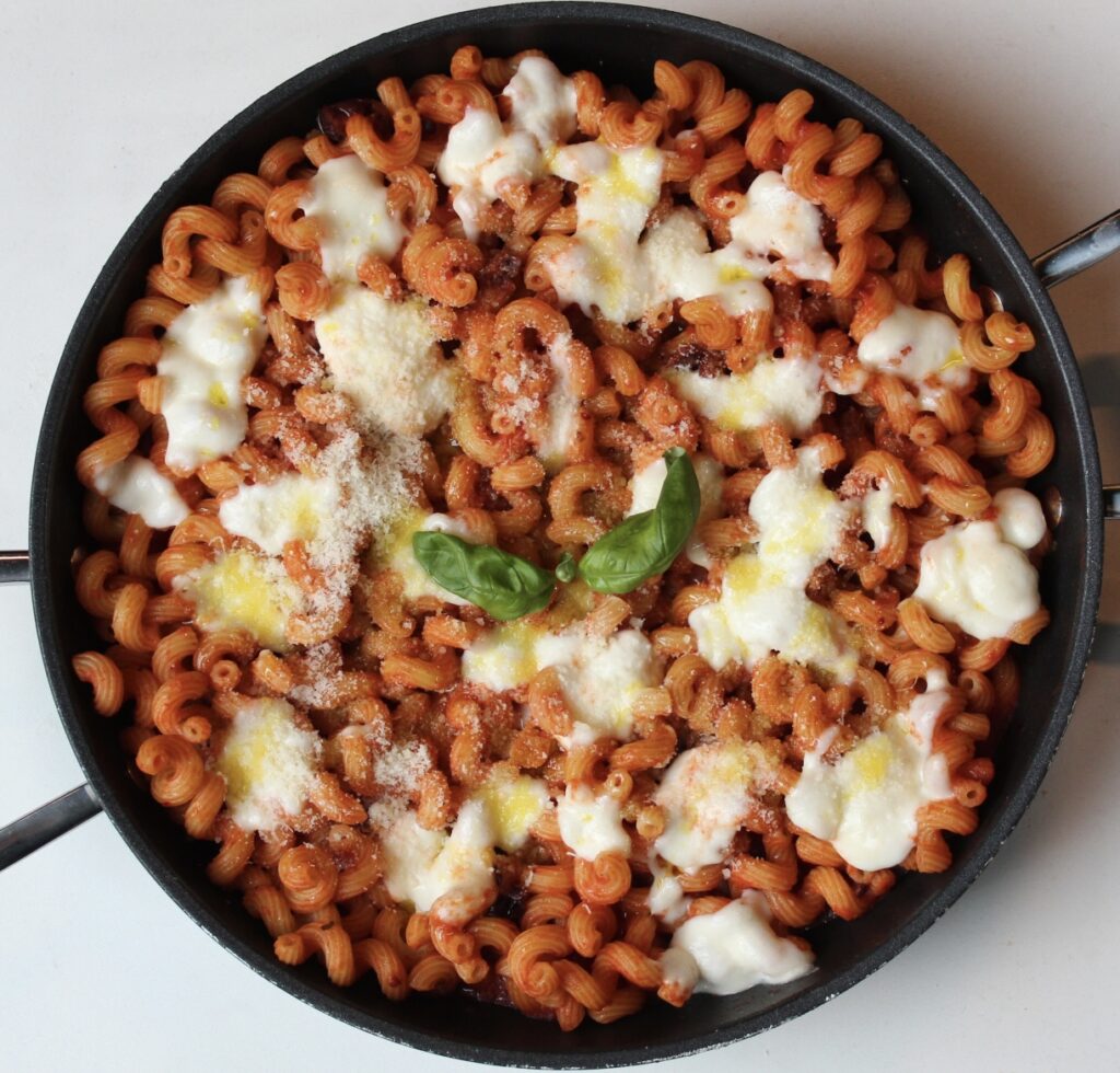Deze makkelijk te bereiden pasta al forno met mozzarella is superlekker.