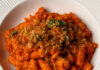 Kook ondertussen de fusilli in een grote pan met licht gezouten water al dente volgens de instructies op de verpakking. Giet af en schep door het tomatenmengsel.