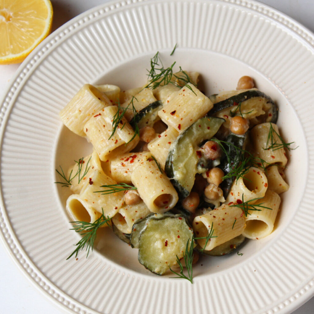 Deze Italiaanse romige pasta e ceci met courgette is superlekker.
