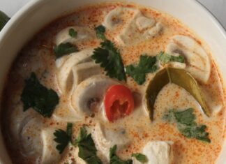 Deze Tom Kha Gai is een lekkere en gezonde soep als je je niet helemaal fit voelt.