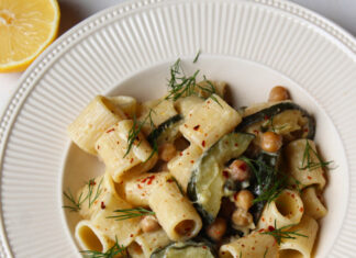 Deze Italiaanse romige pasta e ceci met courgette is superlekker.