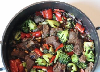 Deze roerbak van biefstuk met broccoli, paprika en ui is superlekker en snel te bereiden.