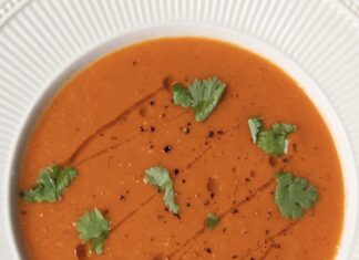 Deze Thaise rode linzensoep met kokosmelk is een hartverwarmende soep op een koude winterse dag.