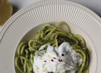 Deze heerlijke snelle groene pasta met burrata is lekker winters met de groente Cavolo Nero.